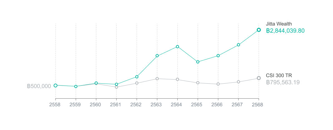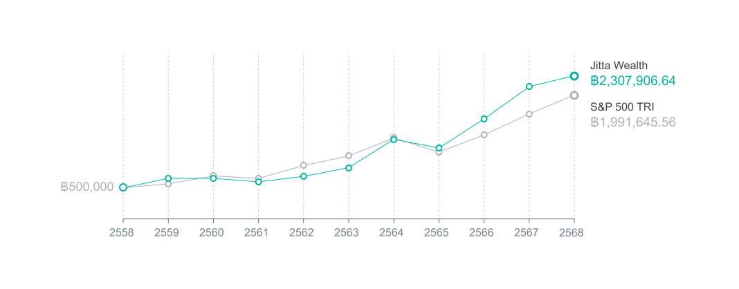| เงินลงทุนเริ่มต้น | ฿500,000 | ฿500,000 | ฿500,000 | ฿500,000 | ฿500,000 | ฿500,000 |