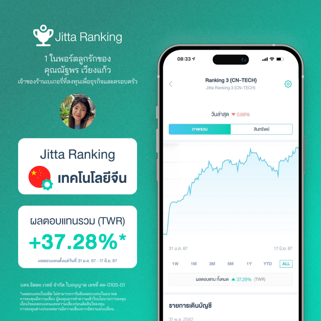 “บอกตัวเองว่า ต่อไปจะไม่ลงทุนอะไรตอนพีคแล้ว รอให้ลงและกำลังจะเป็นขาขึ้นดีกว่า” Jitta Ranking หุ้นเทคโนโลยีจีน +37.28% (31 ม.ค. 67- 20 มิ.ย. 67)