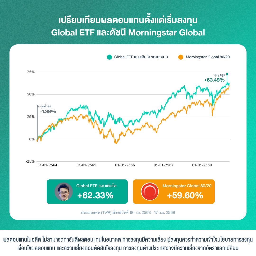 “การทำความเข้าใจธรรมชาติของสิ่งที่เราลงทุน ก็จะไม่เซอร์ไพรส์เวลาตลาดลงหนัก เรารู้ว่าสามารถจัดการกับมันได้ง่ายๆ ด้วยการลงทุนระยะยาวมากๆ” Global ETF +29.22% (วันที่ 4 ธ.ค. 2566)