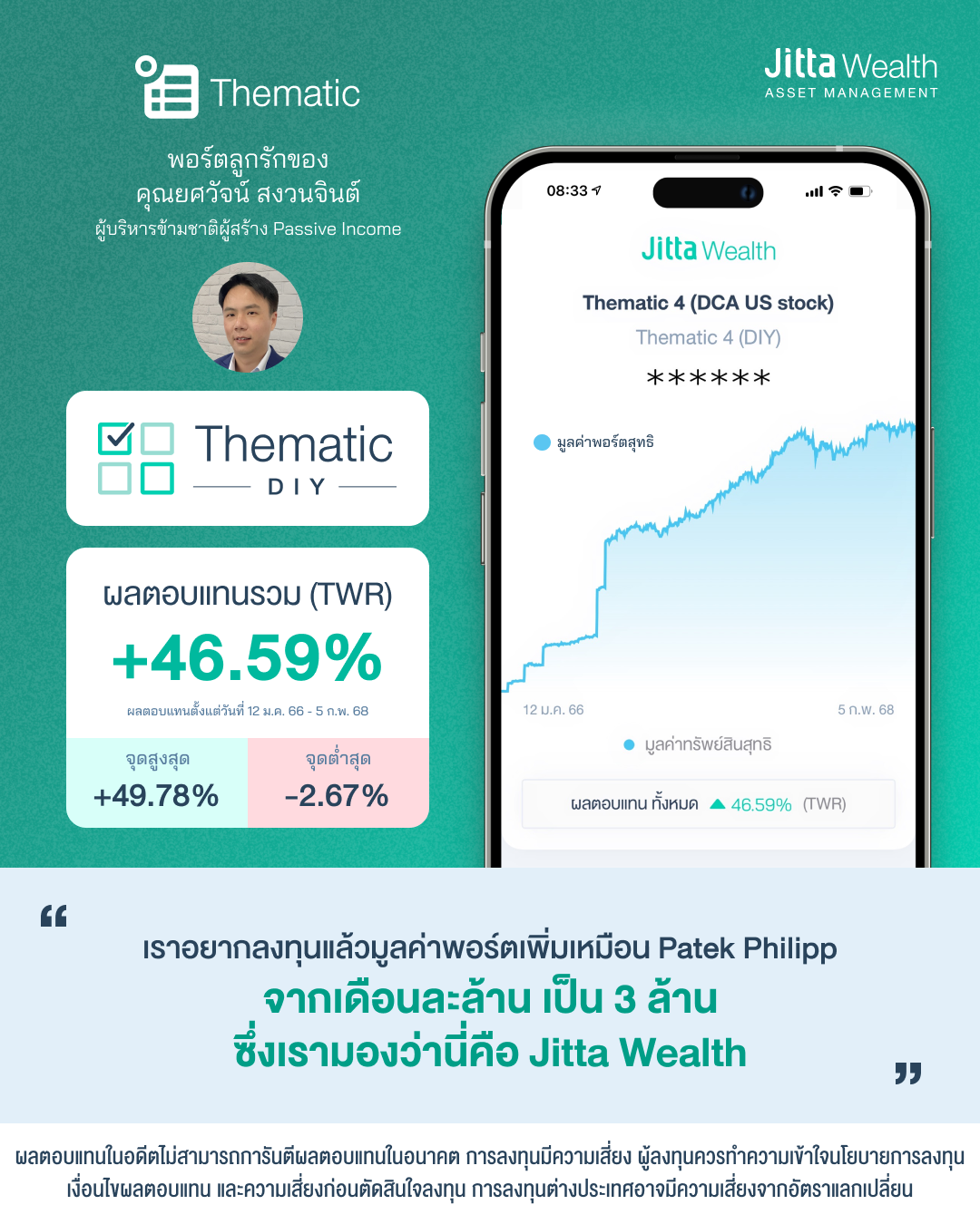 สร้างกำไรด้วยธีมที่ชนะตลาดแล้วเดินหน้า DCA รีวิว Jitta Wealth เคล็ดลับปั้นพอร์ต Thematic DIY