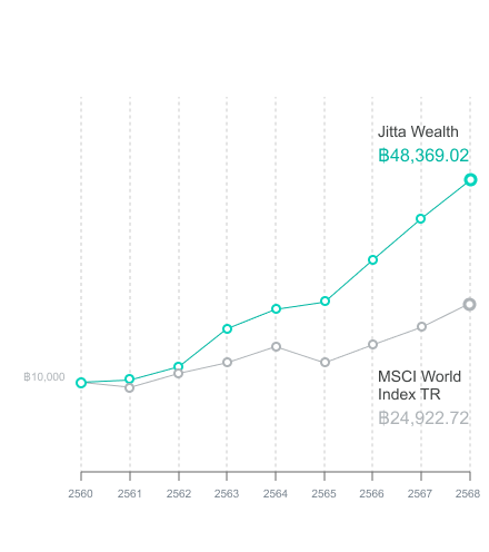 Jitta Wealth มอบทางเลือกการลงทุนตามเมกะเทรนด์แบบใหม่ให้คุณ เพิ่มโอกาสกระจายการลงทุนไปยังบริษัทต่างๆ ที่มีการเติบโตสูง เช่น บริษัทที่อยู่ในตลาดเกิดใหม่ อาทิ จีน อินเดีย บริษัทขนาดใหญ่ในตลาดหุ้นหลักอย่างประเทศสหรัฐอเมริกา หรือบริษัทที่อยู่ในอุตสาหกรรมที่มีโอกาสเติบโตสูง เช่น เทคโนโลยี บริการสุขภาพ เกมและอีสปอร์ต